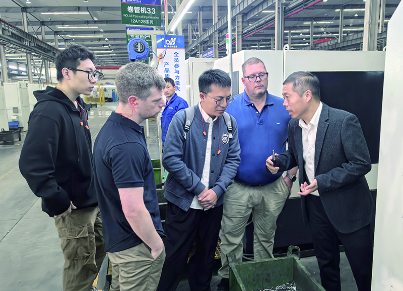 客戶首站參觀了生產(chǎn)車間,依次考察了原材料檢驗(yàn)、工序加工、數(shù)控加工、熱處理、表面處理、裝配及包裝上油等全流程。車間整潔的環(huán)境、先進(jìn)的數(shù)智化設(shè)備以及員工專注的專業(yè)態(tài)度,獲得了客戶的充分肯定。雙方在參觀過程中不時(shí)駐足,就具體工藝細(xì)節(jié)展開現(xiàn)場探討。嚴(yán)謹(jǐn)?shù)牟僮髁鞒膛c精細(xì)的質(zhì)量管控體系,進(jìn)一步向客戶展現(xiàn)了興化公司對產(chǎn)品品質(zhì)的極致追求。