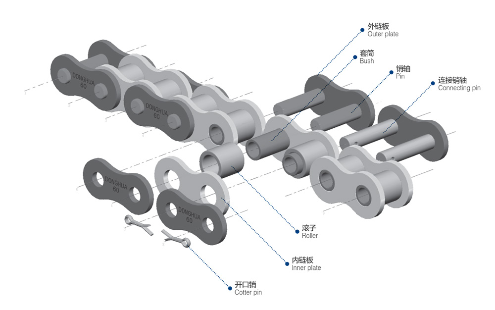 ● 短節(jié)距精密滾子鏈符合ISO、ASME/ANSI、DIN、JIS等標(biāo)準(zhǔn),主要有A系列短節(jié)距精密滾子鏈、B系列短節(jié)距精密滾子鏈、重載系列滾子鏈等系列;