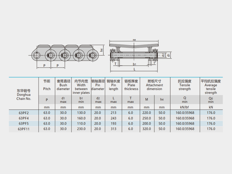 ● 紙卷輸送鏈是紙業加工行業專用輸送鏈條,可根據使用工況提供各種表面防護處理的頂板;產品主要有P63系列、P63.5系列等;