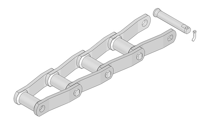 ● 焊接彎板鏈(簡稱)是鋼制彎板鏈的一種,由兩塊彎鏈板與套筒(無滾子)焊接在一起構成彎板鏈節,相同的彎板鏈節連成整鏈,整鏈的鏈節數可以是偶數、也可以是奇數。