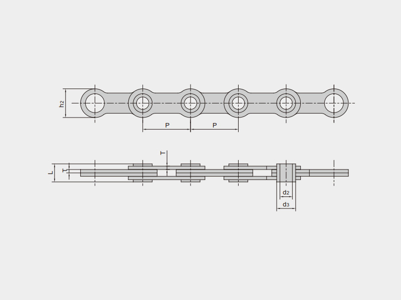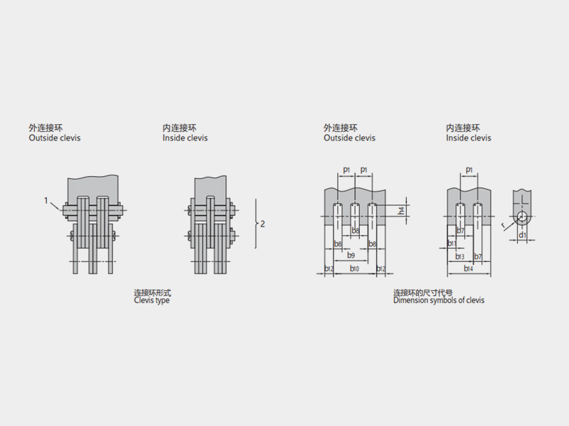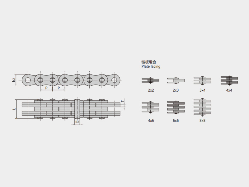 ● 板式鏈符合ISO 4347、ASME B29.8M、JIS B 1804等標(biāo)準(zhǔn),主要有LH(BL)系列、LL系列和AL系列,以及由標(biāo)準(zhǔn)系列衍生的其它鏈號(hào)的板式鏈,節(jié)距范圍5.94mm~76.2mm,可根據(jù)主機(jī)用戶的特殊要求進(jìn)行非標(biāo)定制,并可配套供應(yīng)各種類型連接環(huán)(端接頭)、特殊連接件等附件;